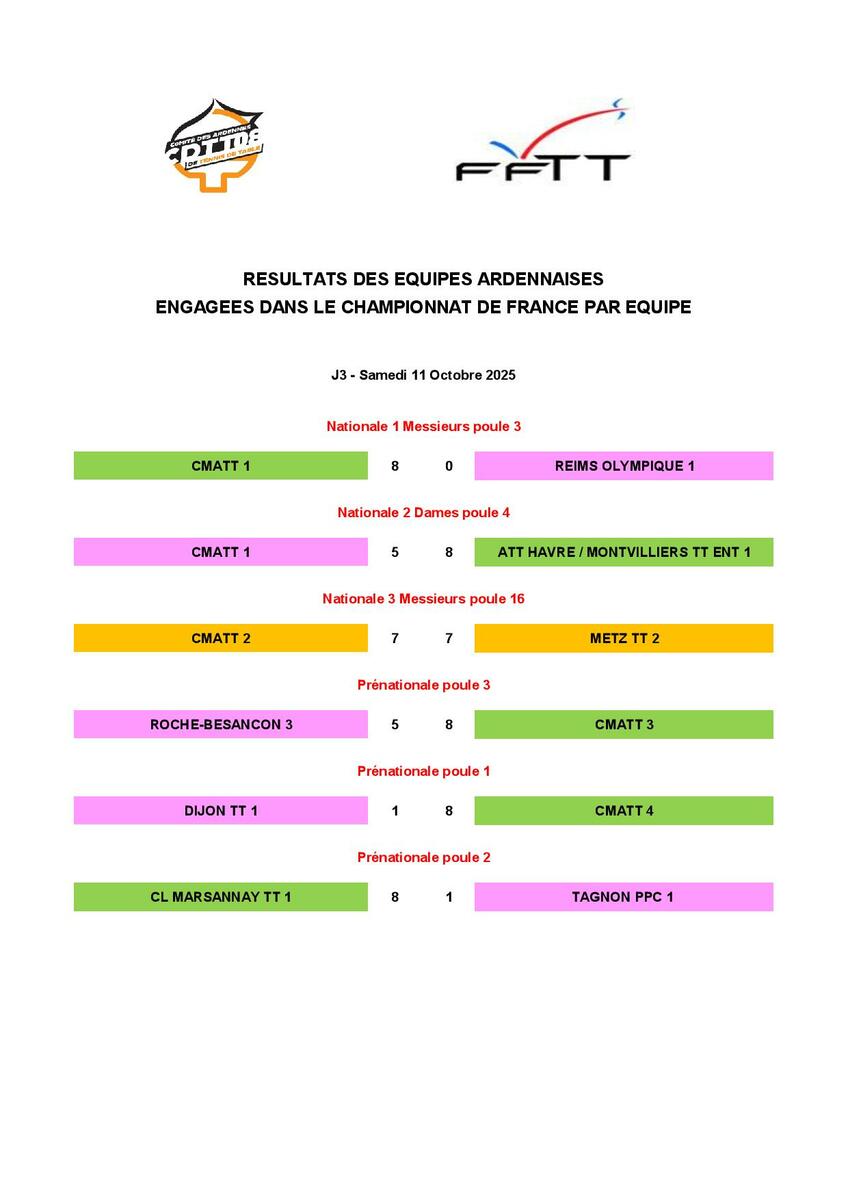 RESULTATS EQUIPES ARDENNAISES - CHAMPIONNAT DE FRANCE PAR EQUIPE