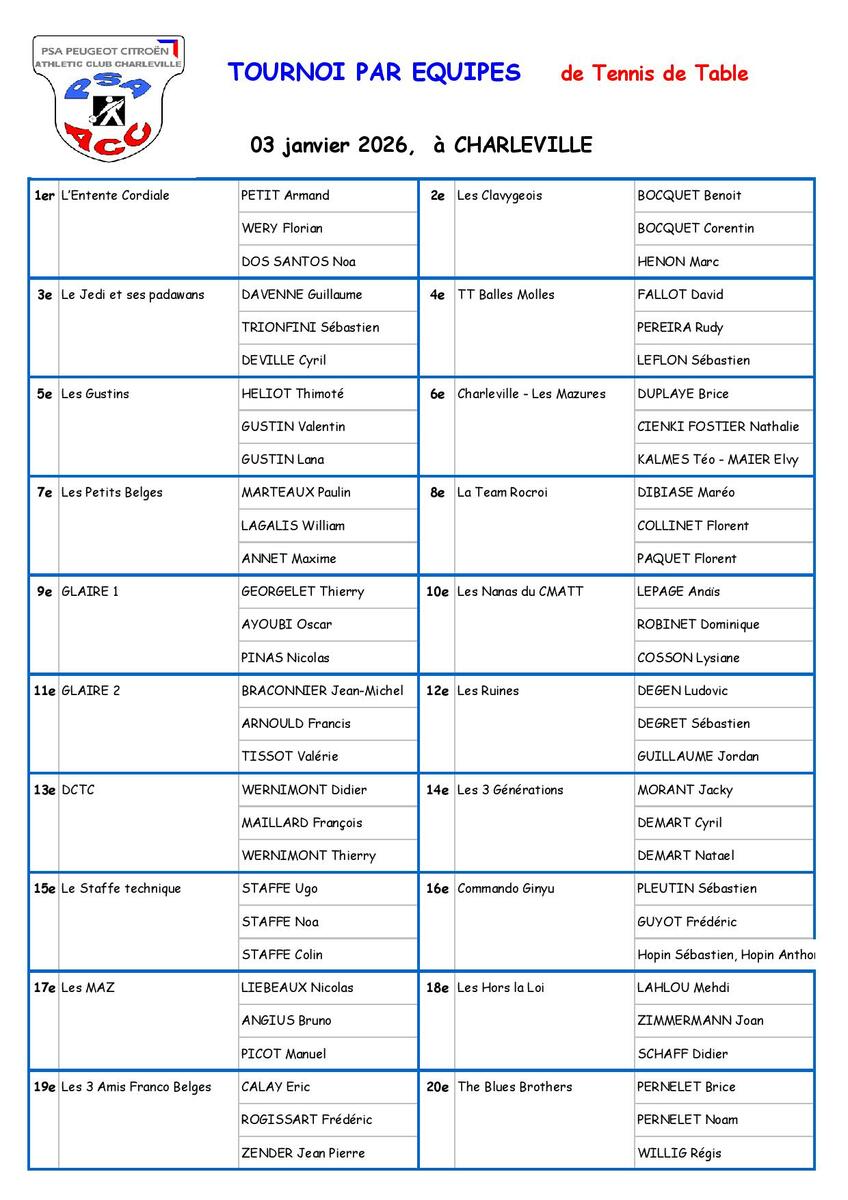 Inscriptions finales par classement - 01 février 2026 - Salle polyvalente du Lac de Bairon