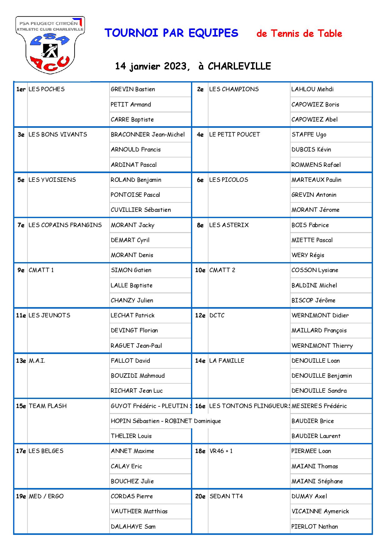 Tournoi Pongistes en Herbe inscriptions 2e tour