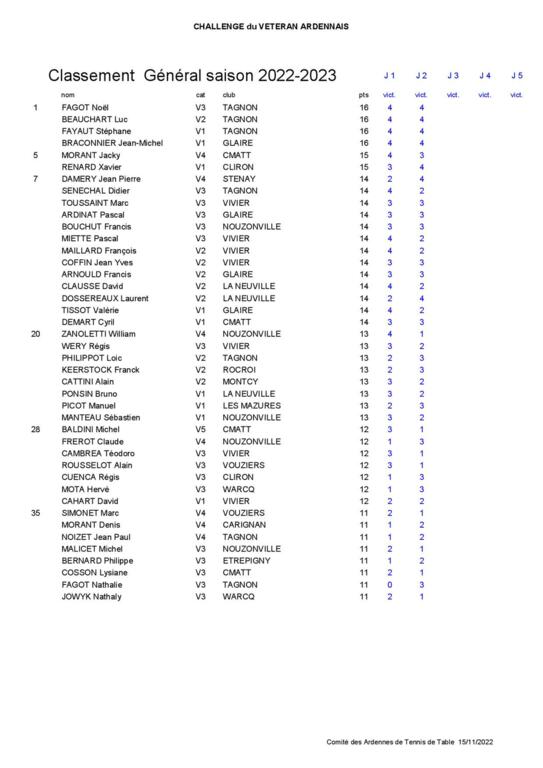 Vous trouverez en pièce jointe le classement à l'issue de la deuxième journée.