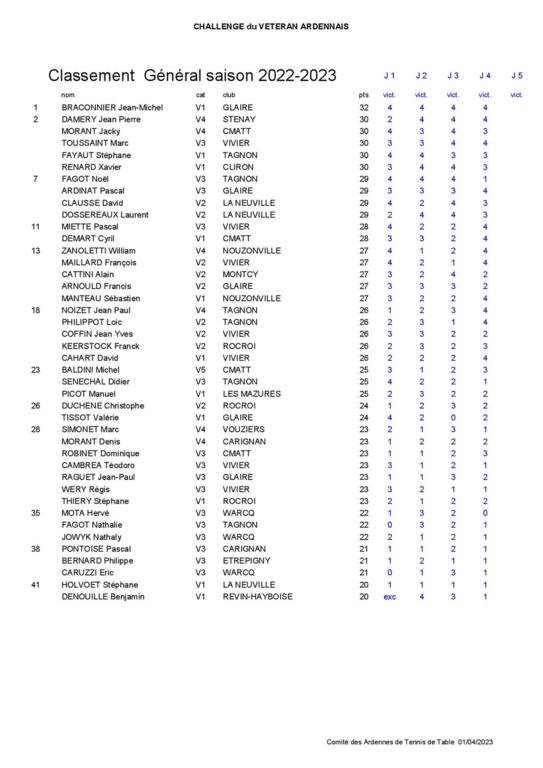 Vous trouverez en pièce jointe le classement à l'issue de la quatrième journée.