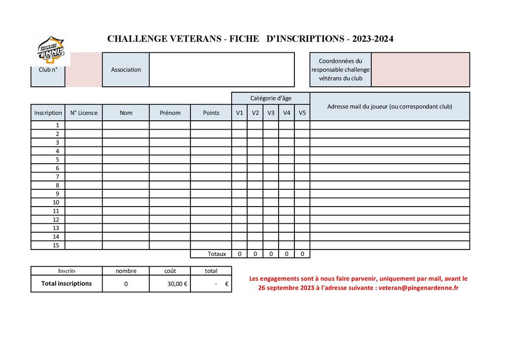 Les inscriptions seront prises jusqu'au 26 sept 2023.