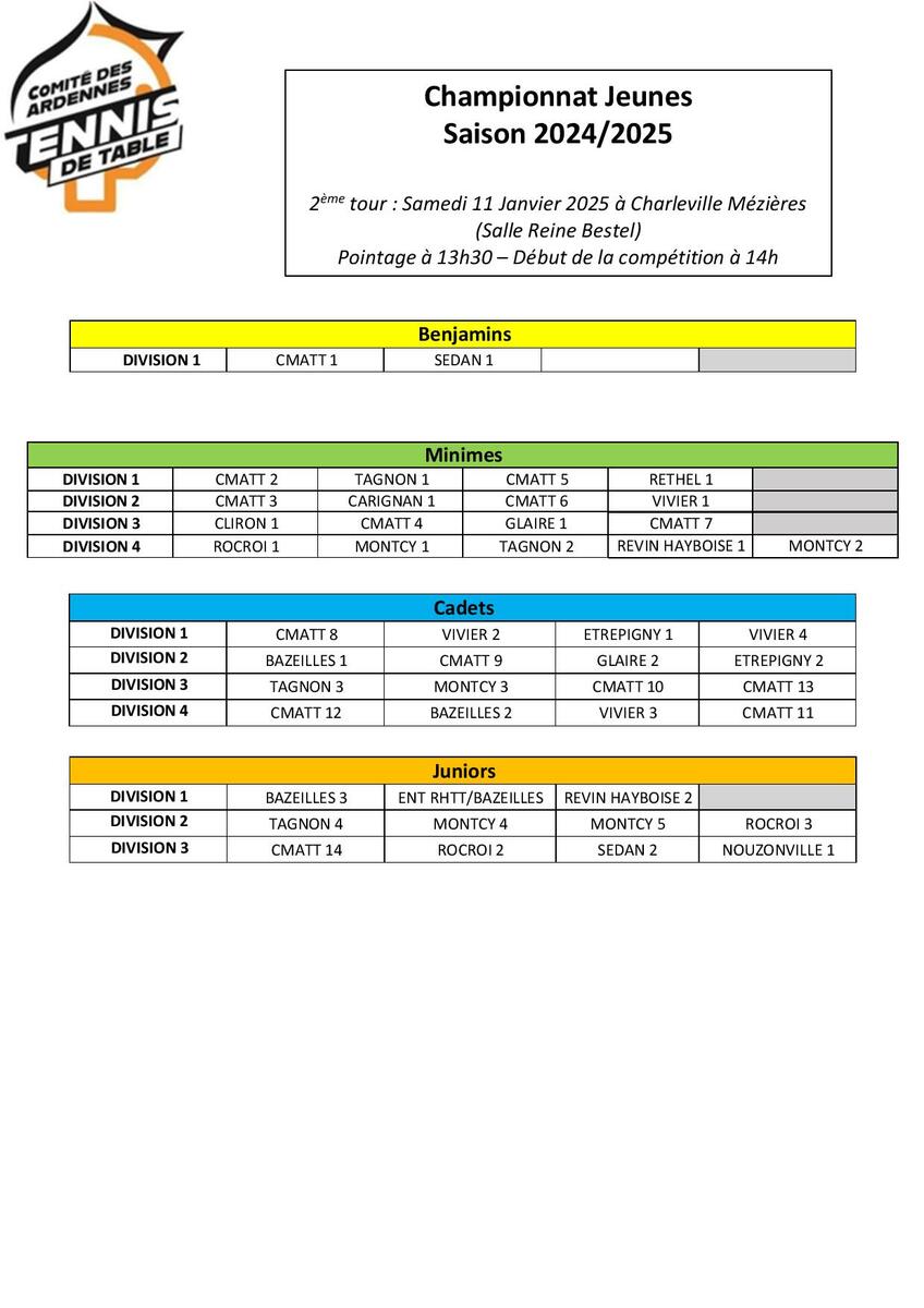 Vous trouverez en pièce jointe, la version 2 du 2e tour du championnat jeunes.