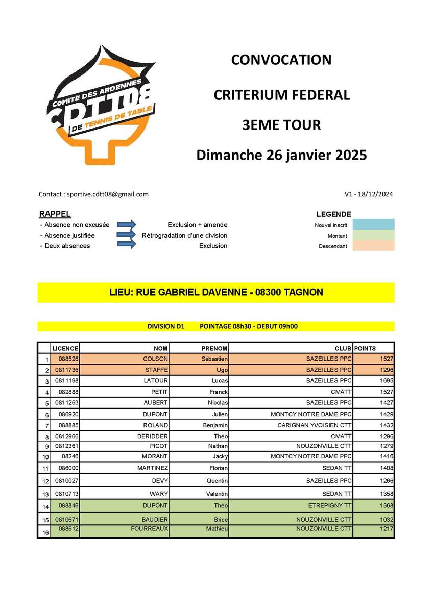 Pensez à signaler toute absence éventuelle, dés que possible, par mail à sportive.cdtt08@gmail.com afin de faciliter l'organisation de la compétition.