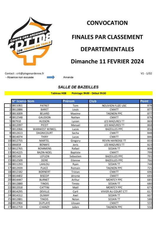 Vous trouverez en pièce jointe la convocation pour les finales par classement qui auront lieu: