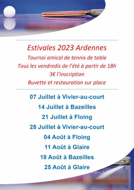 Amis pongistes, voici le programme 2023 des Estivales de Tennis de Table Informations a partager dans tous vos clubs, et également à tous les amateurs de la petite balle en dehors des clubs.