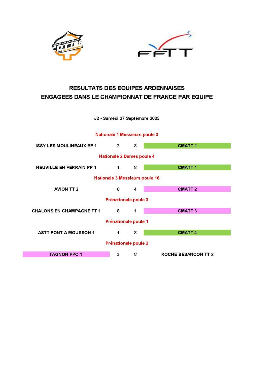 RESULTATS EQUIPES ARDENNAISES - CHAMPIONNAT DE FRANCE PAR EQUIPE